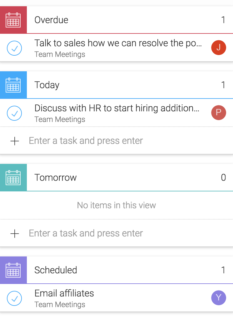 My Tasks gives you a single view of all tasks assigned to you across all your meetings and projects.